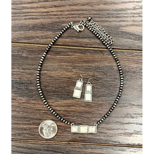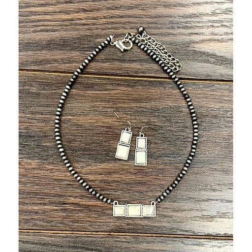Collar de perlas navajo diminuto de 15" de largo y 4 mm, colgante de barra de color turquesa y aretes