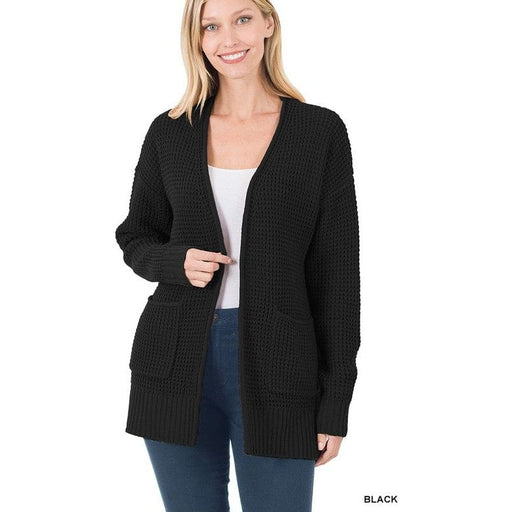 View full detailsLow Gauge Waffle Open Cardigan Sweater