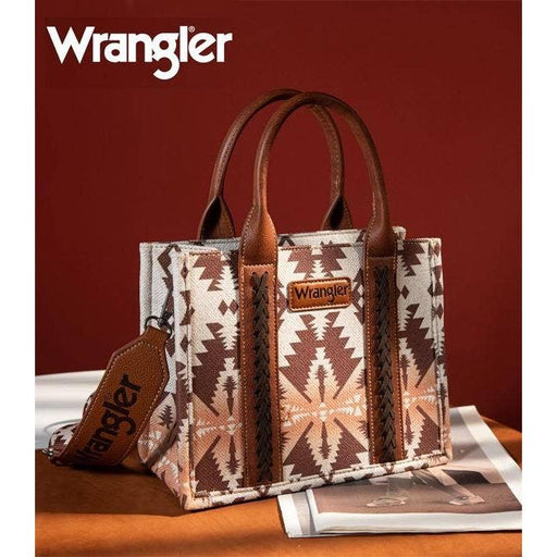 Wrangler Southwestern Print Small Canvas Tote/Crossbody 10.5" X 5" X 8.5" (Crossbody strap 46" ) Allover Aztec pattern print on dual sided canvas W...