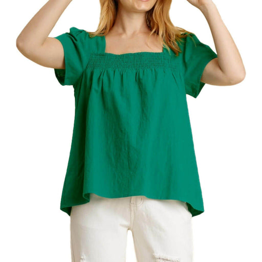 Upgrade your wardrobe with our Smocked Detail Top! Made from 100% cotton, this top features a square neck and short sleeves, with a smocked detail ...