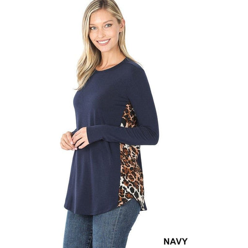 Contrast side panel leopard print long sleeve top