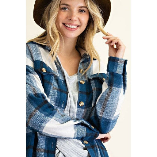 View full detailsButton down plaid midi shirt jacket