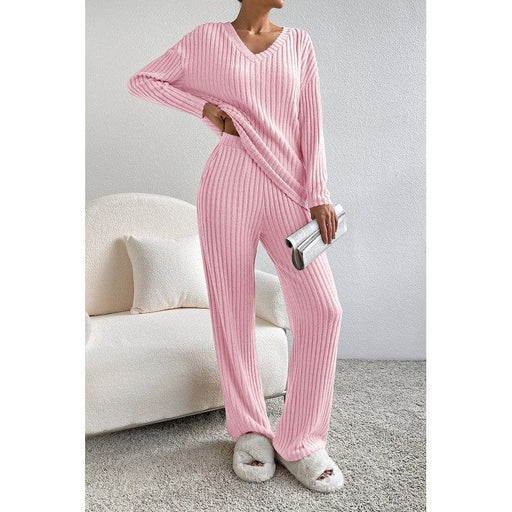 Ribbed Knit V Neck Slouchy Two-piece Outfit