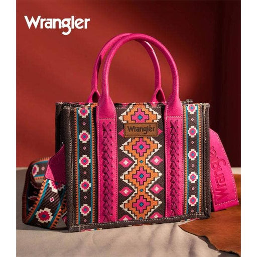 Wrangler Southwestern Print Small Canvas Tote/Crossbody 10.5" X 5" X 8.5" (Crossbody strap 46" ) Allover Aztec pattern print on dual sided canvas W...