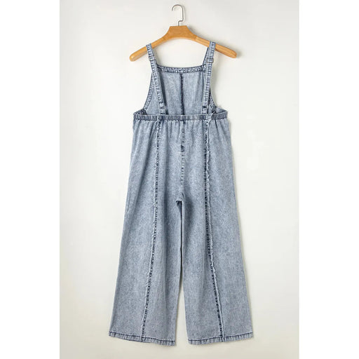 View full detailsBeau Blue Light Wash Frayed Exposed Seam Wide Leg Denim Overall