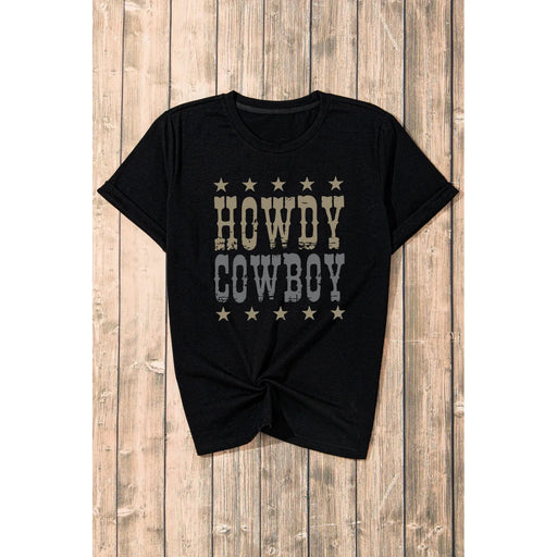 Black HOWDY COWBOY Star Print Crew Neck Loose T Shirt
