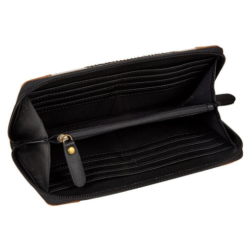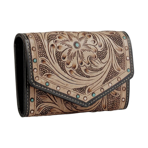 This Beautiful Wallet Offers Southwest Flourish! The Hand-tooled Leather Front Features A Steer Skull Against A Backdrop Of Feathers. Lower. The In...