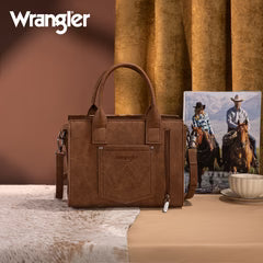 Wrangler Vintage Retro Cowboy Cool Print Concealed Carry Satchel/Crossbody -Tan