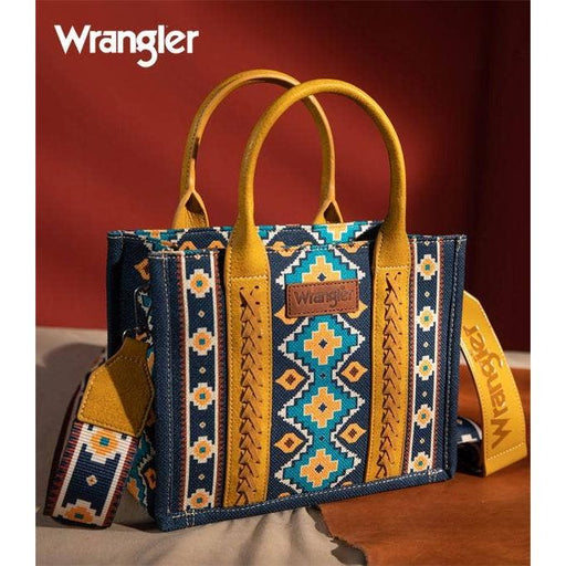 Wrangler Southwestern Print Small Canvas Tote/Crossbody 10.5" X 5" X 8.5" (Crossbody strap 46" ) Allover Aztec pattern print on dual sided canvas W...