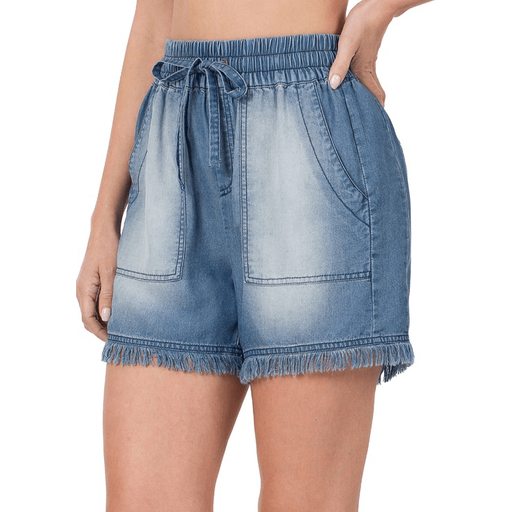 Chambray Frayed Hem Shorts
