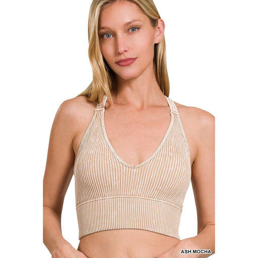 Washed Ribbed Cropped Seamless Bra Padded Tank Top