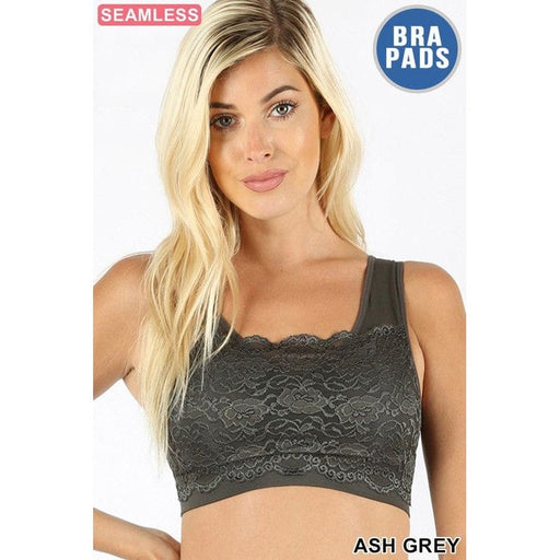 Seamless bra top with front lace cover COLOR MAY VARY SLIGHTLY DUE TO MONITOR RESOLUTIOFabric92% nylon 8% spandex