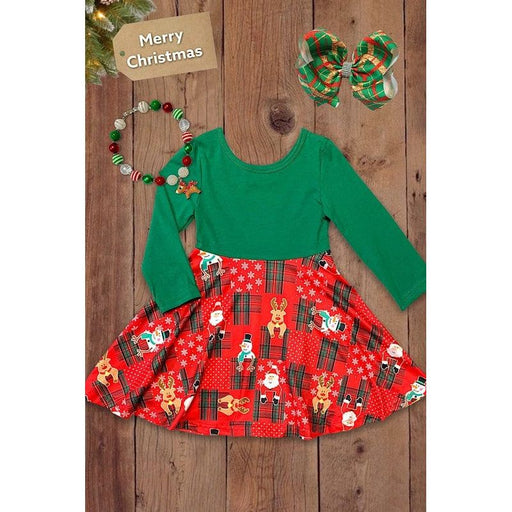 CUTE MULTI COLOR SANTS PRINTED DRESS W/ BELL SLEEVES