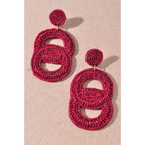 Seed Bead Double Circle Post Dangle Earrings