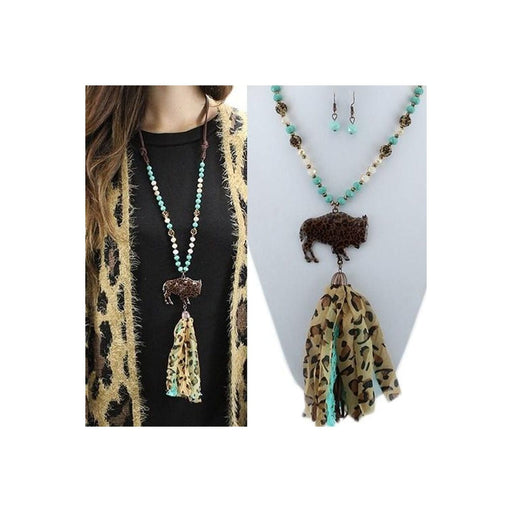 Bison BraceletSerape Printed Bison Pendent Crystal Beaded Chain