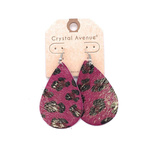 Animal print genuine calf leather tear drop earrings. Material: Zinc, Gold plated Genuine calf leather Lead Compliant, Nickle Free
