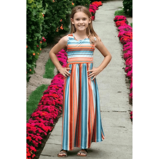 CUTE MULTI COLOR SANTS PRINTED DRESS W/ BELL SLEEVES