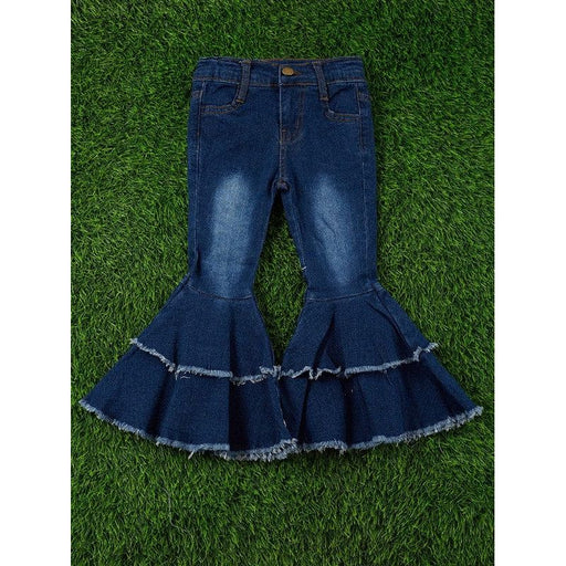 Blue Distressed Double Layer Baby Girls Bell Bottom Jeans ETA: 3-5 Days These jeans feature two layers of fabric for extra durability, making them ...