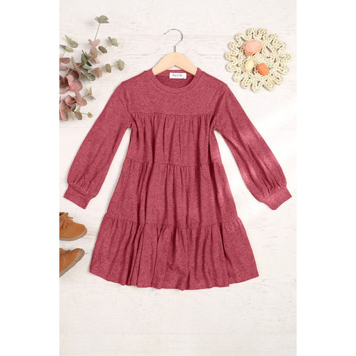 Kids Puff Long Sleeve Tiered Hacci Brushed Dress