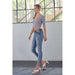 These mid-rise button fly mom jeans have a rise of 8.5" and an inseam of 27" (after 1.5" double fold). Made of 98% cotton and 2% spandex, these jeans offer a comfortable and flattering fit for everyday wear.