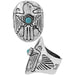 This Western Concho Aztec Thunderbird Gemstone Ring features a high polish, unique western concho style, and intricate Aztec thunderbird texture. Made with an adjustable cuff design, it allows for the perfect fit. Elevate your style and showcase your love for western and Native American culture with this stunning gemstone ring.