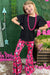 Pant with bull skull & aztec printed pink bell bottoms & flare legs
