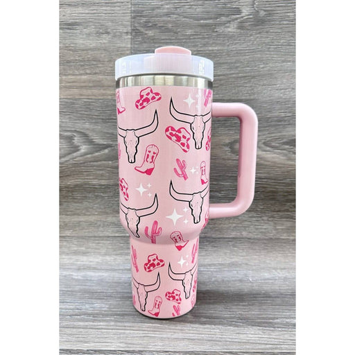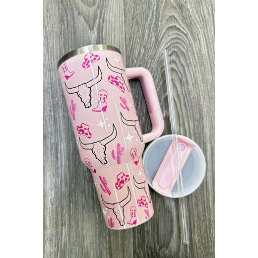 40oz, Western insulated water cup with straw and Handle Made of 304 stainless steel inner liner Size: (H)10.5" X (W)3", 4"