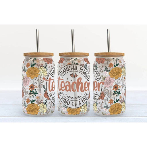 DETAILS: • 17oz glass can • Pink checkered decal design • Size: 6" x 2.625" (8" tall w/ straw) • Clear can with bamboo lid • Glass straw included...