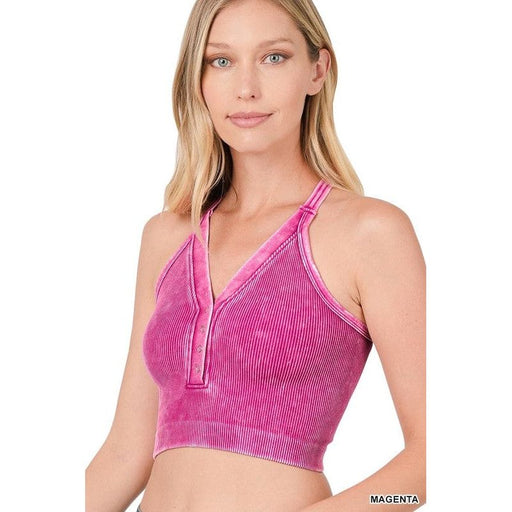 Washed Ribbed Cropped Button V-neck Tank Top