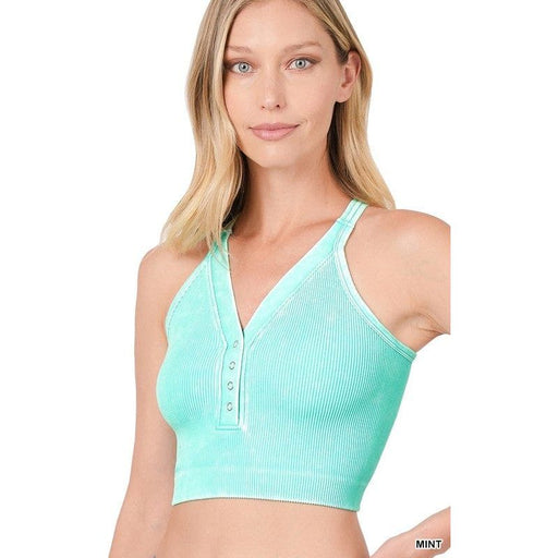 View full detailsWashed Ribbed Cropped Button V-neck Tank Top