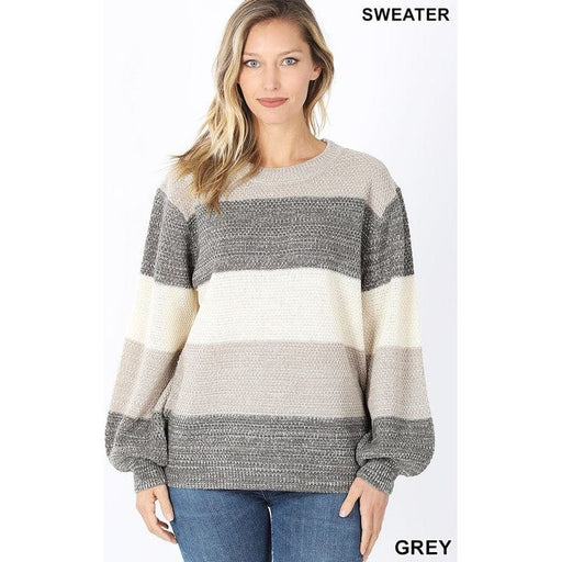 Melange color block balloon sleeve sweaterTotal body length: 26", chest: 42" approx. - measured from small