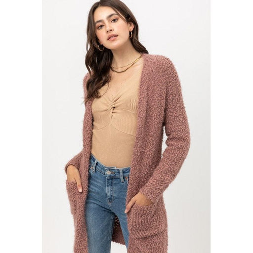 Popcorn eyelash open front long line cardigan