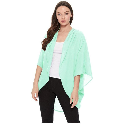 Solid, long body cardigan Solid, long body cardigan in a loose fit with an open front, 3/4 length kimono sleeves, and hi-low hem.*Approx: Length: ...