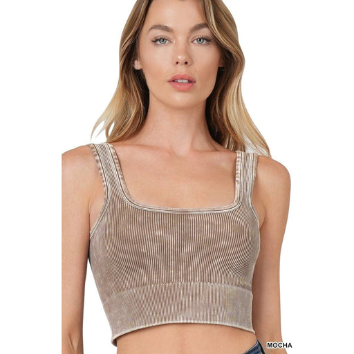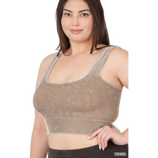View full detailsPlus Washed Ribbed Square Neck Cropped Tank Top