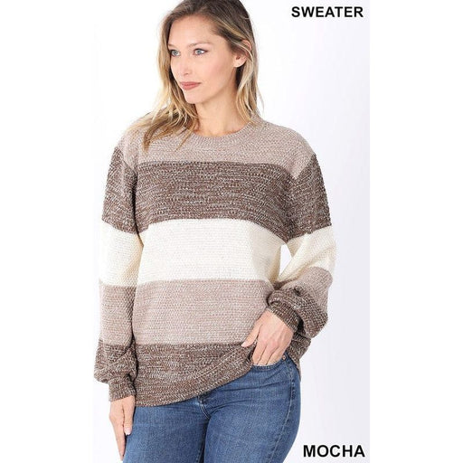 Melange color block balloon sleeve sweaterTotal body length: 26", chest: 42" approx. - measured from small