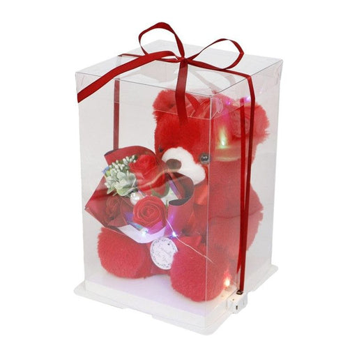 Teddy Bear Plush Doll LED Light-Up Gift Box with Soap Rose Flower Bouquet -Individually packaged (Clear giftbox comes preassembled) -Assorted Color...