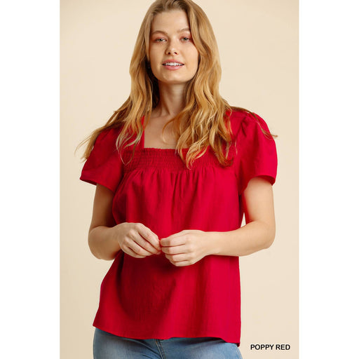 Upgrade your wardrobe with our Smocked Detail Top! Made from 100% cotton, this top features a square neck and short sleeves, with a smocked detail ...