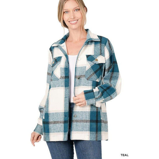 View full detailsOversized Yarn Dyed Plaid Shacket With Pockets