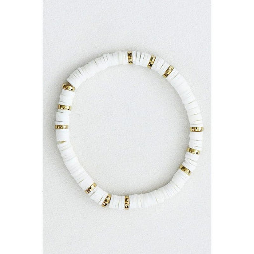 Multicolored Heishi rubber flat disc bracelet. Polymer soft clay disk beaded stretch bracelet.
