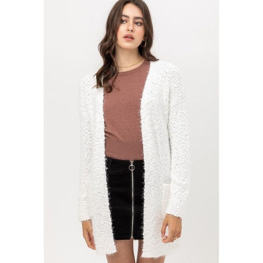 View full detailsPopcorn eyelash open front long line cardigan