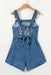 Sky Blue Buckle Straps Tied Backless Flared Denim Romper