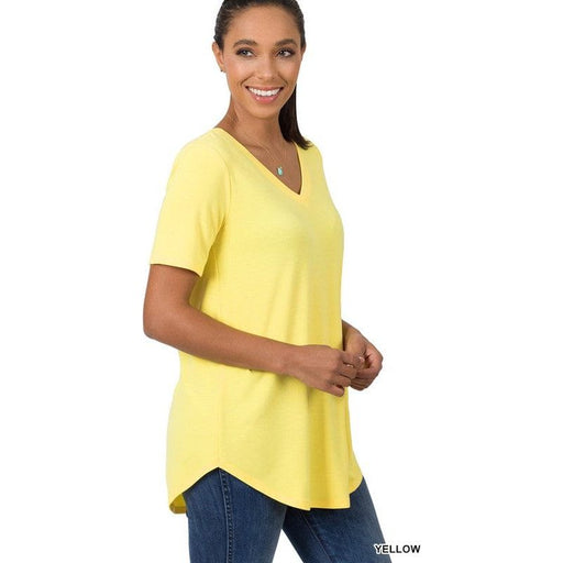 Short sleeve v-neck round hem top- relaxed fit- perfect tee- best qualityTotal body length: 28.5", bust: 35" approx.- measured from small** color m...
