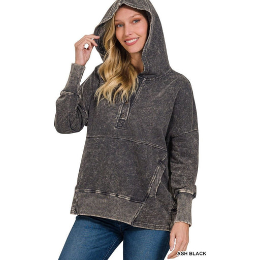 Experience comfort and style with the Acid Wash Oversized Fleece Pullover. Featuring balloon sleeves and a unique overlap neckband, this pullover o...