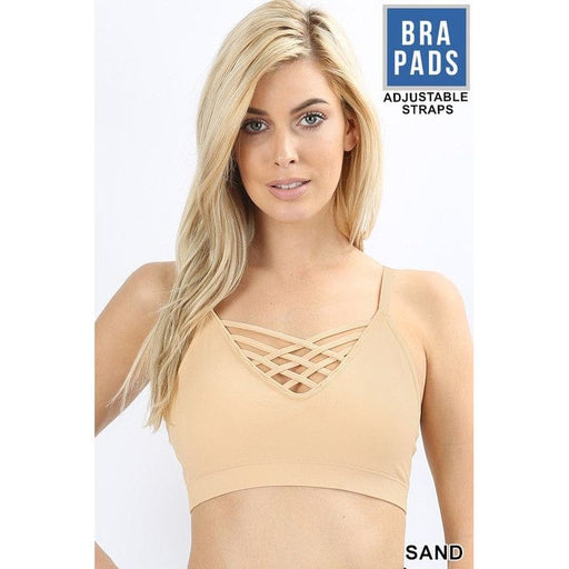 Front v-lattice, adjustable straps bralette with removable bra pads Padded adjustable