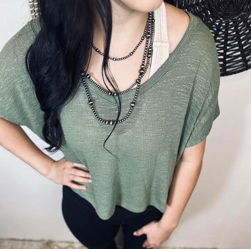 The Hacci Slub V-neck Drop Shoulder Crop Top offers a relaxed yet stylish fit with a total body length of 19" and a generous bust measurement of ap...