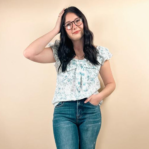View full detailsFloral Ruffled Short Sleeve Bow Square Neck Blouse