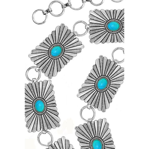 Add some flair to your western fashion with our stunning Gemstone Concho Flower Chain Belt! Made with high-quality materials, this accessory is per...