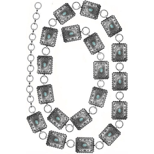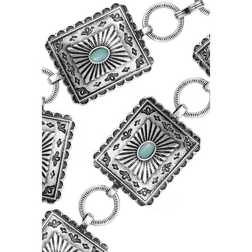 High polish western concho style anzac pattern casting with gemstone fashion chain belt