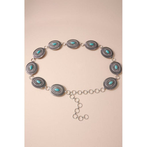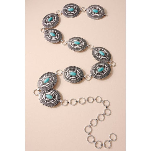 High Polish Western Concho Style Textured Oval Casting With Gem Stone Fashion Chain Belt*pendant  Qty:10 Pcs*belt Body Length : 35 Inch Long *exten...