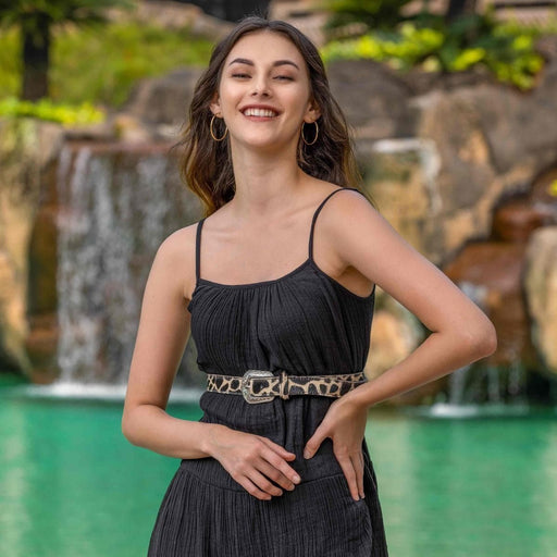 Made from genuine leather and crafted with leopard print, this belt has a bold side to it. It is paired with a basic silver-tone buckle which stand...